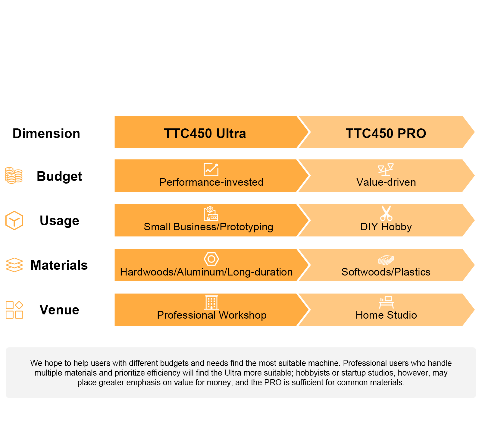 With Ultra, finish faster and produce more in thesame time. With PRO, enjoy a steady, deliberate pace.