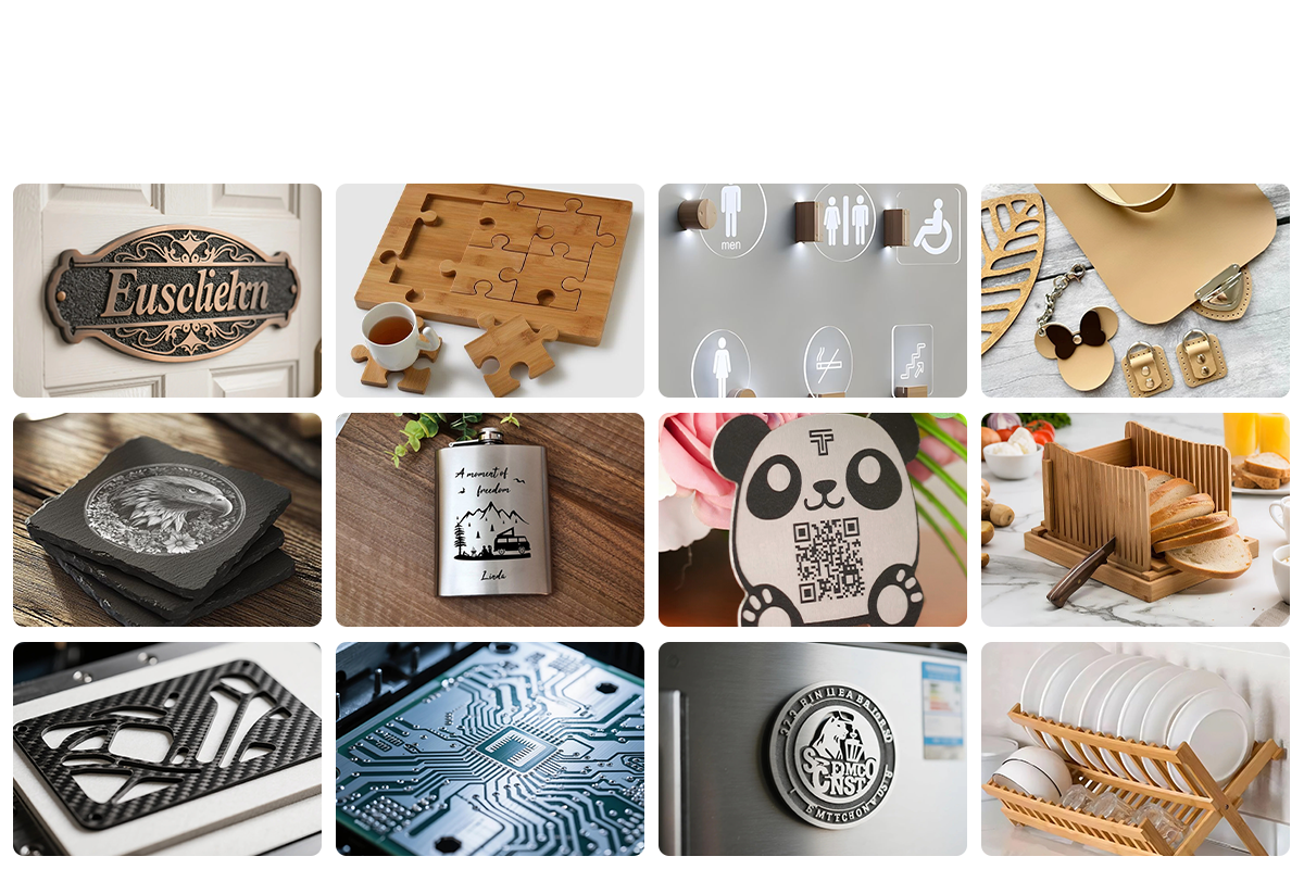 Plywood, MDF, Solid Wood, Acrylic, Carbon Fiber, Aluminum, Copper, Stainless Steel